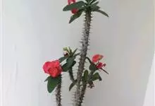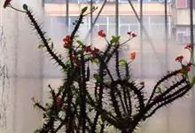 虎刺梅:别称铁海棠,是蔓生灌木植物。茎多分枝,长60-100厘米,直径5-10毫米,具纵棱,密生硬而尖的锥状刺,刺长1-1.5厘米,直径0.5-1.0 毫米,常呈3-5列排列于棱脊上,呈旋转。叶互生…全部>>