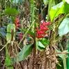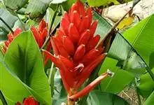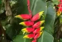 金嘴蝎尾蕉:芭蕉科,蝎尾蕉属多年生草本植物。株高可达6米。叶片长圆形,叶面绿色,叶背亮紫色;顶生花序,直立,薄被短柔毛;苞片绿色,开放时突露,花被片红色,顶端绿色,狭圆柱形,果三棱形,灰蓝色,有种子…全部>>