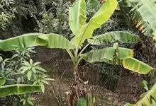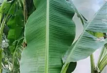 香蕉’),芭蕉科芭蕉属多年生草本植物,植株丛生,有匐匍茎;假茎浓绿有黑色斑点;叶片长圆形,上面为深绿色,无白粉,下面浅绿色;花朵为乳白色或淡紫色;果实呈弯曲的弓状,有棱,果皮为青绿色,…全部>>