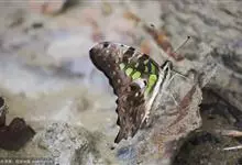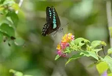 青带凤蝶Graphium sarpedon ,又名青凤蝶,是最普遍的中型凤蝶,飞行速度很快。青带凤蝶的翅膀中央有许多浅蓝色的斑点,很整齐地排列成一条直线。这些斑点由上而下逐渐变大,就像一条青色的带子。全部>>