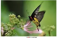 金裳凤蝶是凤蝶科、裳凤蝶属的动物。金裳凤蝶身体呈黑色,头、颈和胸侧有红毛,腹部有黑黄两色相间条纹,雄蝶前翅黑色,具黑天鹅绒光泽,各脉两侧灰白色,后翅金黄色,各室外缘有等腰三角形黑斑1枚,斑内侧有晕,…全部>>