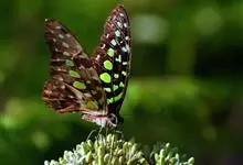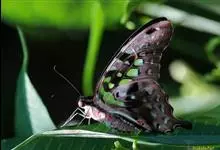 青带凤蝶Graphium sarpedon ,又名青凤蝶,是最普遍的中型凤蝶,飞行速度很快。青带凤蝶的翅膀中央有许多浅蓝色的斑点,很整齐地排列成一条直线。这些斑点由上而下逐渐变大,就像一条青色的带子。全部>>