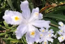 鸢尾,又名老鸹蒜、蛤蟆七、扁竹花、紫蝴蝶、蓝蝴蝶、屋顶鸢尾等,是鸢尾科鸢尾属一种多年生草本植物。鸢尾根状茎粗壮,二歧分枝;叶基生,黄绿色,宽剑形;花茎光滑,苞片2-3枚,绿色,草质,边缘膜质,色淡,…全部>>