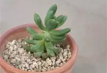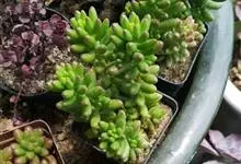 玉米石是景天科、景天属植物。多年生草本多浆植物。植株低矮丛生,多分枝。叶膨大成圆筒形、卵形或近小球形,互生至簇生,长0.6-1.2厘米,宽0.4-0.7厘米,叶端钝圆,亮绿色,肉质,硝带红晕,…全部>>