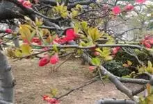 贴梗海棠Nakai)是蔷薇科、木瓜海棠属植物。落叶灌木,高达2米,枝条直立开展,有刺。叶片卵形至椭圆形,稀长椭圆形,长3-9厘米,宽1.5-5厘米。花先叶开放,3-5朵簇生于二年生老枝上。…全部>>