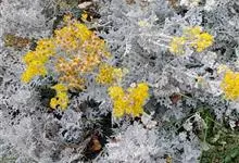 银叶菊,是菊科疆千里光属多年生草本植物。银叶菊的茎灰白色,植株多分枝;叶回羽状裂,正反面均被银白色柔毛;头状花序集成伞房花序,舌状花小,金黄色,管状花褐黄色;花期为6-9月。银叶菊原产于地中海沿岸地区,…全部>>