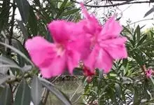 夹竹桃,又名红花夹竹桃、欧洲夹竹桃,是夹竹桃科夹竹桃属的一种常绿直立大灌木,枝条灰绿色,含水液。叶披针形,3叶轮生。聚伞花序顶生,花冠粉红至深红色,花冠漏斗状,有特殊香味。蓇葖果,圆柱形。种子长圆形,…全部>>