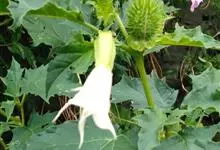 曼陀罗,茄科曼陀罗属一年生大型草本植物,全株光滑。有臭气;叶呈广卯形,边缘具不规则波状浅齿裂;花单生于枝杖间或叶腋,直立,有短梗;花萼是筒状裂片三角形,颜色为白色或淡紫色;果实为蒴果卵状,…全部>>