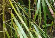 竹节蓼 Meisn.)是蓼科千叶兰属常绿灌木。株高可达1-3米;老枝圆柱形,暗褐色,幼茎扁平,亮绿色,形似叶片,有节及纵沟;叶退化,幼年有少量披针形叶片,端渐尖,基部楔形,全缘或近基部有锯齿,…全部>>