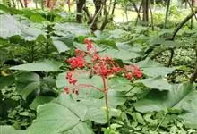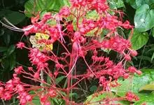 赪桐 Sweet)是唇形科、大青属灌木,高1-4米,叶片圆心形,顶端尖或渐尖,基部心形,边缘有疏短尖齿,表面疏生伏毛,二歧聚伞花序组成顶生,大而开展的圆锥花序,花序的最后侧枝呈总状花序,花萼红色,…全部>>