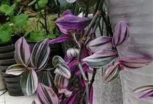 吊竹梅是鸭跖草科紫露草属的多年生草本植物;茎半肉质,柔弱披散至悬垂;叶椭圆形至长圆形,无柄,先端急尖至渐尖,基部鞘状抱茎,叶面紫绿色而杂有银白色,叶背紫色,全缘;花聚生于顶生叶状苞内,…全部>>