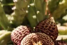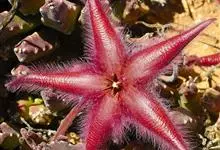 巨花犀角又称大豹皮花,是夹竹桃科犀角属的一种植物。茎粗,花大,边缘生长细毛。植株柱形多分枝呈丛生,柱形具4棱,棱缘具细小疣突。花大,五角星形黄色,并有横向棕褐色斑纹,似豹皮而得名。花期夏秋两季。…全部>>
