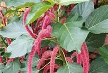 红穗铁苋菜:为大戟科、铁苋菜属植物,灌木,高0.5-3米。嫩枝被灰色短绒毛,毛逐渐脱落,小枝无毛。 花序色泽鲜艳,葇荑花序下垂,如狐狸尾状,雌花近卵形,长约0.8毫米,顶端急尖,具短毛;子房近球形,…全部>>