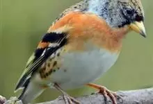 燕雀属小型鸟类,体长14-17厘米。嘴粗壮而尖,呈圆锥状。雄鸟从头至背辉黑色,背具黄褐色羽缘。腰白色,颏、喉、胸橙黄色,腹至尾下覆羽白色,两胁淡棕色而具黑色斑点。两翅和尾黑色,翅上具白斑。…全部>>