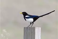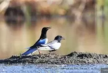 喜鹊:是鸦科、鹊属的一种鸟类。共有11个亚种。体长40-50厘米,雌雄羽色相似,头、颈、背至尾均为黑色,并自前往后分别呈现紫色、绿蓝色、绿色等光泽,双翅黑色而在翼肩有一大形白斑,尾远较翅长,呈楔形,…全部>>