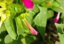 即紫茉莉,英文名:Four-o'clock,Marvel of Peru,为紫茉莉科、紫茉莉属多年生草本植物,一年生栽培。株高50~80cm。根粗壮,茎多分枝而散生。叶对生,卵形或心脏形。花数朵簇生…全部>>