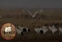 丹顶鹤:是鹤科、鹤属的一种大型涉禽,体长120-160厘米。颈、脚较长,通体大多白色,头顶鲜红色,喉和颈黑色,耳至头枕白色,脚黑色,站立时颈、尾部飞羽和脚黑色,头顶红色,…全部>>
