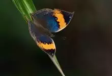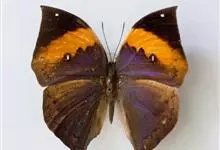 枯叶蛱蝶,又名木叶蝶、树叶蝶等,属于蛱蝶科。翅正面黑褐色,具深蓝色光泽,前翅顶角尖出,顶区有1枚小白点,中部有1条倾斜的橙色斑带,从前缘延伸至Cu室外缘,u室中部有1枚黑色圆斑,…全部>>