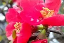 贴梗海棠 Nakai)是蔷薇科、木瓜海棠属植物。落叶灌木,高达2米,枝条直立开展,有刺。叶片卵形至椭圆形,稀长椭圆形,长3-9厘米,宽1.5-5厘米。花先叶开放,3-5朵簇生于二年生老枝上。…全部>>