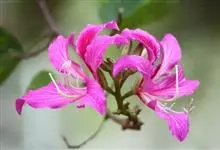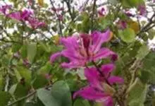 红花羊蹄甲,为豆科羊蹄甲属植物,别名艳紫荆、洋紫荆。半落叶乔木,高达了~10 m,叶草质,近圆形或阔心形,长8~13cm顶端开裂至全叶长1/4~13,裂片顶端圆。总状花序顶生或腋生,花冠紫红色,…全部>>