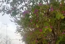 洋紫荆:落叶乔木;树皮暗褐色,近光滑;幼嫩部分常被灰色短柔毛;枝广展,硬而稍呈之字曲折,无毛。叶近革质,广卵形至近圆形,宽度常超过于长度,先端2裂达叶长的1/3,裂片阔,钝头或圆,两面无毛或下面略被…全部>>