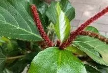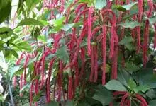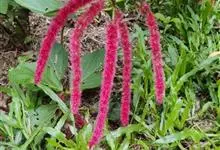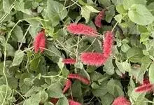 红穗铁苋菜:为大戟科、铁苋菜属植物,灌木,高0.5-3米。嫩枝被灰色短绒毛,毛逐渐脱落,小枝无毛。 花序色泽鲜艳,葇荑花序下垂,如狐狸尾状,雌花近卵形,长约0.8毫米,顶端急尖,具短毛;子房近球形,…全部>>