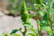 反枝苋是苋科苋属的一年生草本植物。株高达1米;茎密被柔毛;叶菱状卵形或椭圆状卵形,先端锐尖或尖凹,两面及边缘被柔毛,下面毛较密;穗状圆锥花序,顶生花穗较侧生者长;花被片长圆形或长圆状倒卵形,…全部>>