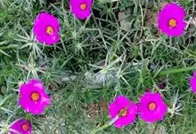 大花马齿苋:一年生草本,高10-30厘米。茎平卧或斜升,紫红色,多分枝,节上丛生毛。叶密集枝端,较下的叶不规则互生,叶片细圆柱形,无毛。花单生或数朵簇生枝端,直径2.5-4厘米,…全部>>