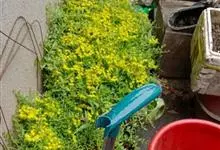 垂盆草别名石头菜、狗牙瓣、豆瓣菜等,为景天科景天属的多年生草本植物。不育枝及花茎细,匍匐而节上生根,直到花序之下;3叶轮生,叶倒披针形至长圆形,先端近急尖,基部急狭,有距;聚伞花序,花无梗,…全部>>