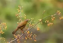 画眉,是雀形目噪鹛属一种鸣禽,别名为文武鸟、金画眉。成年画眉体长为21~25cm,体重为49~75g,眼周具一圈白色羽毛,并向眼后延伸形成一条显著的白色眉纹;上体覆羽呈卡其色,飞羽为暗褐色,…全部>>