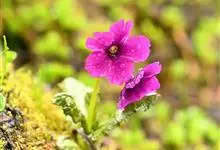 暗紫脆蒴报春是报春花科、报春花属多年生草本植物。根状茎稍粗壮,短或稍伸长;叶卵圆形至肾圆形,先端钝圆,基部心形;花葶上部被柔毛,下半部变无毛,苞片披针形或线状披针形,花冠紫红色。…全部>>