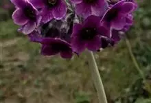 暗紫脆蒴报春是报春花科、报春花属多年生草本植物。根状茎稍粗壮,短或稍伸长;叶卵圆形至肾圆形,先端钝圆,基部心形;花葶上部被柔毛,下半部变无毛,苞片披针形或线状披针形,花冠紫红色。…全部>>