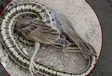 家麻雀:共有13个亚种。是小型鸟类,体长14-16厘米。背栗红色具黑色纵纹,两侧具皮黄色纵纹;颏、喉和上胸黑色,脸颊白色,其余下体白色,翅上具白色带斑。雄鸟与树麻雀的区别在顶冠及尾上覆羽灰色,耳无黑…全部>>