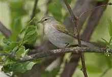 极北柳莺:体长11-13厘米,体小偏灰橄榄色,具明显的黄白色长眉纹,眼先及过眼纹近黑。上体概呈灰橄榄绿色;具甚浅的白色翼斑,大覆羽先端黄白色,形成一道翅上翼斑;中覆羽羽尖成第二道模糊的翼斑;下体白色…全部>>