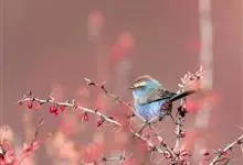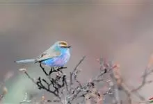 凤头雀莺:小型鸟类。体长9-10厘米,雄鸟呈毛茸茸的紫色和绛紫色,顶冠淡紫灰色,额及凤头白色,尾全蓝。雌鸟喉及上胸白,至臀部渐变成淡紫色,耳羽灰,…全部>>