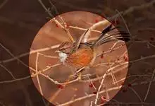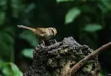 棕头雀鹛为鸦雀科,褐鹛属小型鸟类,体长10-13厘米。头顶栗褐色具黑色侧冠纹。上体茶黄色,飞羽外侧表面灰白色,内侧表面红棕色,内外二色之间夹有黑色。颏、喉白色具不明显的暗色纵纹,胸沾葡萄灰色,…全部>>