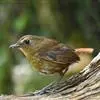 白喉短翅鸫是鹟科、短翅鸫属小型鸟类,体长12-13厘米。上体锈褐或橄榄褐色,眼上方有1-2枚白羽,颏、喉纯白色,胸、腹亦白色,但羽缘浅褐色。虹膜暗褐色,嘴暗褐色,下嘴较淡,脚淡褐色、肉色或暗紫肉色。…全部>>
