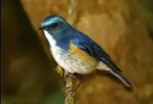 红胁蓝尾鸲俗名:蓝点冈子、蓝尾巴根子、蓝尾杰、蓝尾欧鸲。体型略小而喉白的鸲。特征为橘黄色两胁与白色腹部及臀成对比。雄鸟上体蓝色,眉纹白;亚成鸟及雌鸟褐色,尾蓝。…全部>>