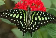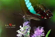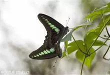 青带凤蝶Graphium sarpedon ,又名青凤蝶,是最普遍的中型凤蝶,飞行速度很快。青带凤蝶的翅膀中央有许多浅蓝色的斑点,很整齐地排列成一条直线。这些斑点由上而下逐渐变大,就像一条青色的带子。全部>>
