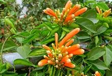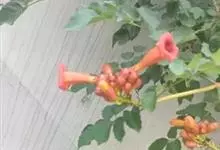 凌霄 Schum.),别名上树龙、五爪龙、九龙下海等,为紫葳科凌霄属的攀援藤本植物。其茎木质,以气生根攀附于它物之上。叶对生,为奇数羽状复叶;小叶卵形至卵状披针形,边缘有粗锯齿;顶生疏散的短圆锥花序,…全部>>