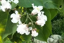 楸紫葳科小乔木,高8-12米。叶三角状卵形或卵状长圆形,宽达8厘米,顶端长渐尖,基部截形,阔楔形或心形,叶面深绿色,叶背无毛;叶柄长2-8厘米。顶生伞房状总状花序,有花2-12朵。花萼蕾时圆球形,…全部>>