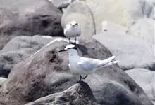 鸥嘴噪鸥,中型水禽,体长31~39厘米。夏羽额、头顶、枕和头的两侧从眼和耳羽以上黑色。背、肩、腰和翅上覆羽珠灰色。后颈、尾上覆羽和尾白色,中央一对尾羽珠灰色。尾呈深叉状。冬羽头白色,头顶和枕缀有灰色…全部>>
