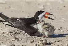 剪嘴鸥:是鸟纲、剪嘴鸥科的中型水鸟,体长40-43厘米。嘴粗,长而侧扁,基部较宽。下嘴较上嘴显著为长。嘴的颜色为橙红色,尖端黄色,脚短,红色。头顶至枕黑色。嘴基、颊、后颈和整个下体白色,上体和翅黑褐色,…全部>>