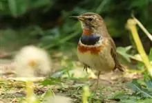 蓝点颏亦称“蓝喉歌鸲”,通称蓝靛颏儿。身体大小和麻雀相似,体长12-13厘米,体重17-18克。头部、上体主要为土褐色。眉纹白色。尾羽黑褐色,基部栗红色。颏部、喉部辉蓝色,下面有黑色横纹。下体白色。…全部>>