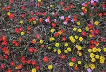 大花马齿苋:一年生草本,高10-30厘米。茎平卧或斜升,紫红色,多分枝,节上丛生毛。叶密集枝端,较下的叶不规则互生,叶片细圆柱形,无毛。花单生或数朵簇生枝端,直径2.5-4厘米,…全部>>