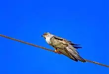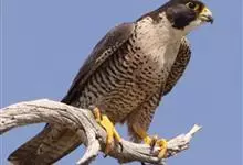 游隼yóu sǔn:是隼科、隼属的中型猛禽,共有18个亚种。体长41-50厘米。翅长而尖,眼周黄色,颊有一粗著的垂直向下的黑色髭纹,头至后颈灰黑色,其余上体蓝灰色,尾具数条黑色横带。…全部>>
