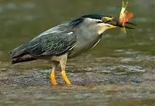 普通鸬鹚是属于鲣鸟目鸬鹚科鸬鹚属鸟类,又名水老鸦、鱼鹰、乌鬼、黑鱼郎等。体长720—900毫米,雌雄同型。通体黑色,有绿褐色金属光泽;喙厚重,喙基和喉囊橙黄色,脸颊及喉白色;夏羽颈及头饰具白色丝状羽,…全部>>