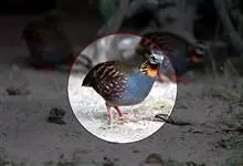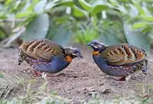 冕鹧鸪:是鸡形目、雉科、冕鹧鸪属的一种漂亮的鸟类,体长26厘米左右,大小和鹌鹑差不多。整体呈带有光泽的蓝紫色,腿为赤红色;雌雄与其他雉类差异较大不同,雌雄都长着红眼圈,喙附近长着细长的须,…全部>>