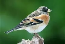 燕雀属小型鸟类,体长14-17厘米。嘴粗壮而尖,呈圆锥状。雄鸟从头至背辉黑色,背具黄褐色羽缘。腰白色,颏、喉、胸橙黄色,腹至尾下覆羽白色,两胁淡棕色而具黑色斑点。两翅和尾黑色,翅上具白斑。…全部>>