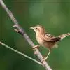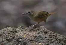 黄喉雀鹛是雀眉科、拟希鹛属小型鸟类,体长11-12厘米。头顶浅黄色具黑色鳞状斑,头顶两侧各有一道黑色侧冠纹,眉纹浅黄色、长而宽阔。上体灰绿色,两翅和尾褐色而具浅黄色窄缘。下体淡黄色。特征明显,…全部>>
